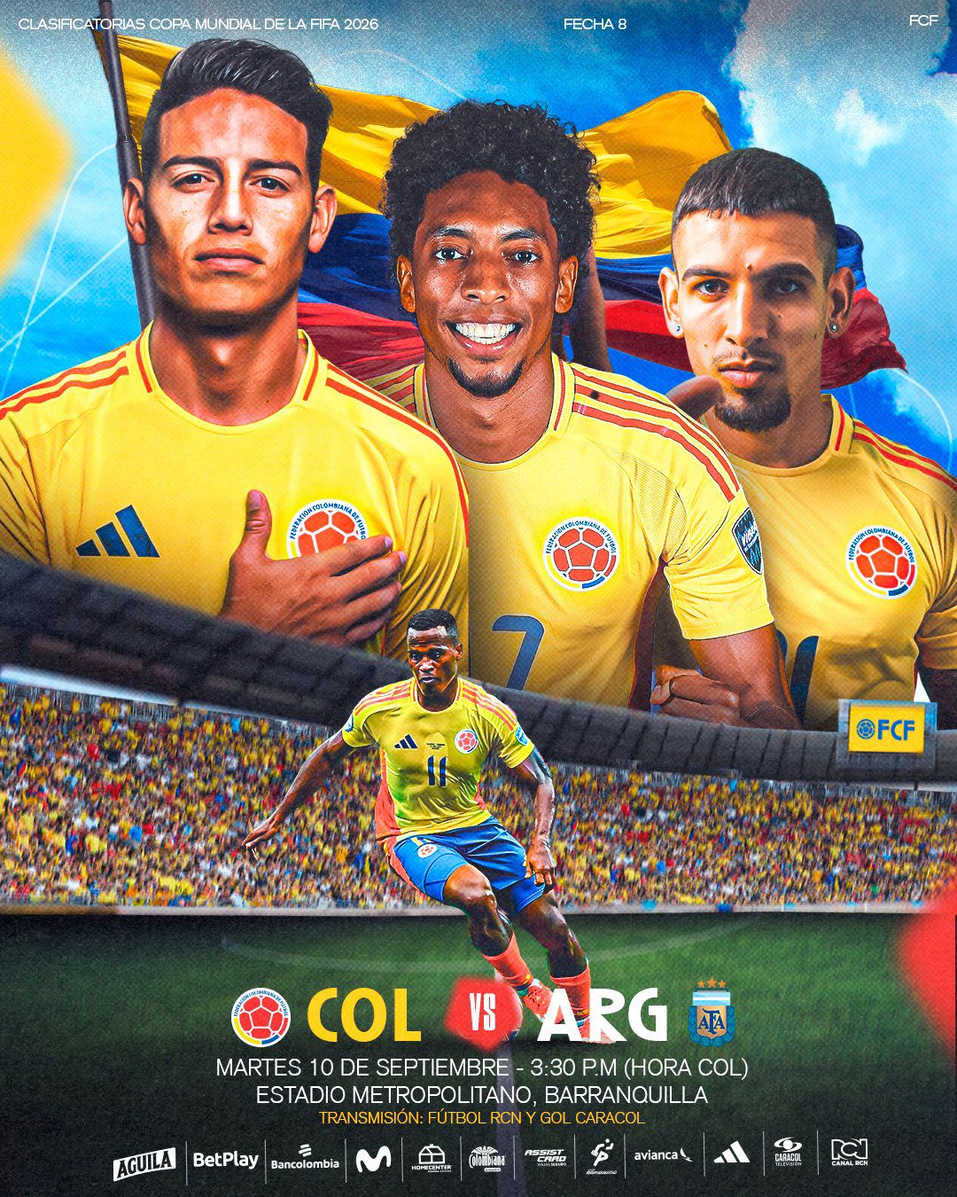La Selección Colombia y Argentina se enfrentan este martes en el estadio Metropolitano Romelio Martínez, en un partido correspondiente a la octava fecha de las eliminatorias rumbo al Mundial de Estados Unidos, México y Canadá 2026. Ambos equipos llegan con realidades distintas: mientras la albiceleste lidera la tabla con 18 puntos, Colombia ocupa la tercera posición con 13 unidades, siendo el único equipo invicto en esta etapa clasificatoria.