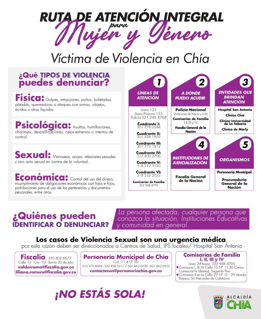 Conozca la Ruta de Atención Integral para Mujer y Género, en caso ser víctima de violencia física, psicológica, sexual y económica, son 5 pasos: