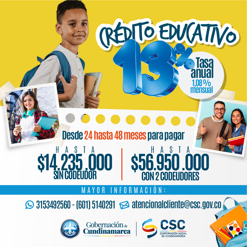 Este crédito está destinado únicamente al pago de estudios en Preescolar, Básica Primaria, Básica Secundaria, Técnica, Tecnológica, Superior, Diplomados, Postgrados y Carrera Militar o de Policía todos los costos educativos que demanden las personas discapacitadas que requieran de educación especial. También está destinado para el pago de créditos estudiantiles, adquiridos en instituciones financieras y otras especializadas en la materia.