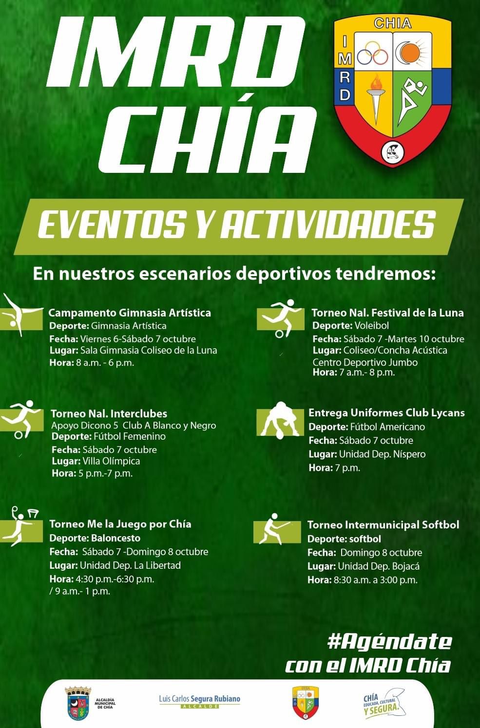 Agéndate con el IMRD de Chía y acompaña a los deportistas en los diferentes escenarios deportivos para disfrutar en familia de las emocionantes actividades que llenarán de energía positiva el municipio.