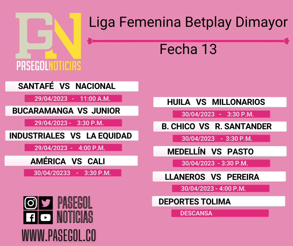 Entre el 29 y el 30 de abril de jugará la fecha 13 de la Liga Femenina Betplay Dimayor.