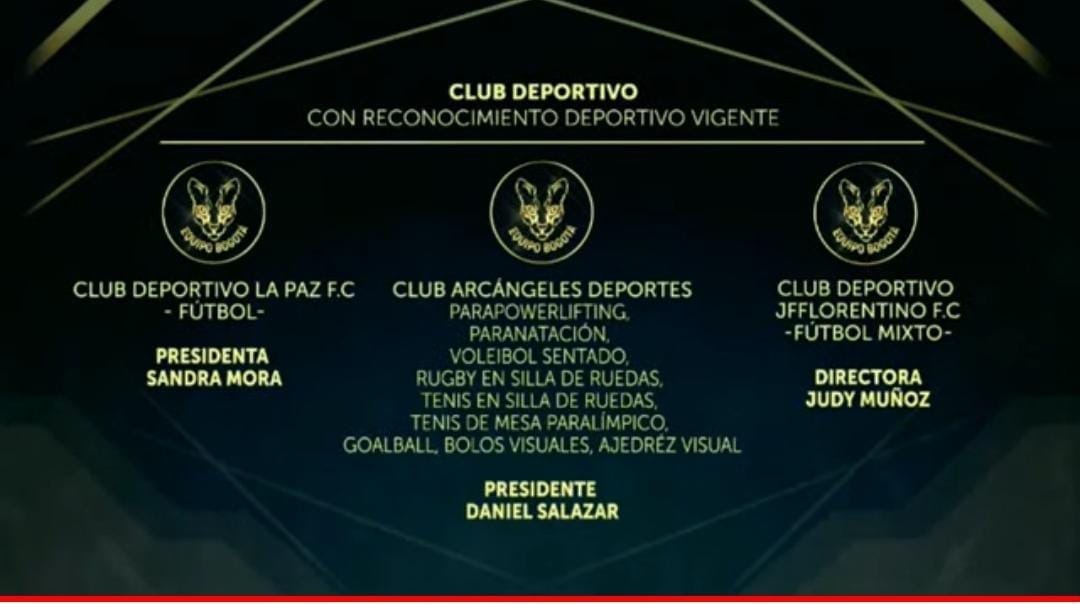 Fueron Más de 10 categorías premiadas, incluyendo deportistas, dirigentes, entrenadores, escuelas y ligas deportivas, una de las categorías más aplaudidas en esta versión de los premios Equipo Bogotá 2023, fue la de “mejor Club deportivo con reconocimiento deportivo vigente”, importante categoría que conto con tres clubes seleccionados, versión que tuvo como gran protagonista al Club Deportivo La Paz F.C, único club de fútbol entre los nominados, institución perteneciente a la Liga de Fútbol capitalina.