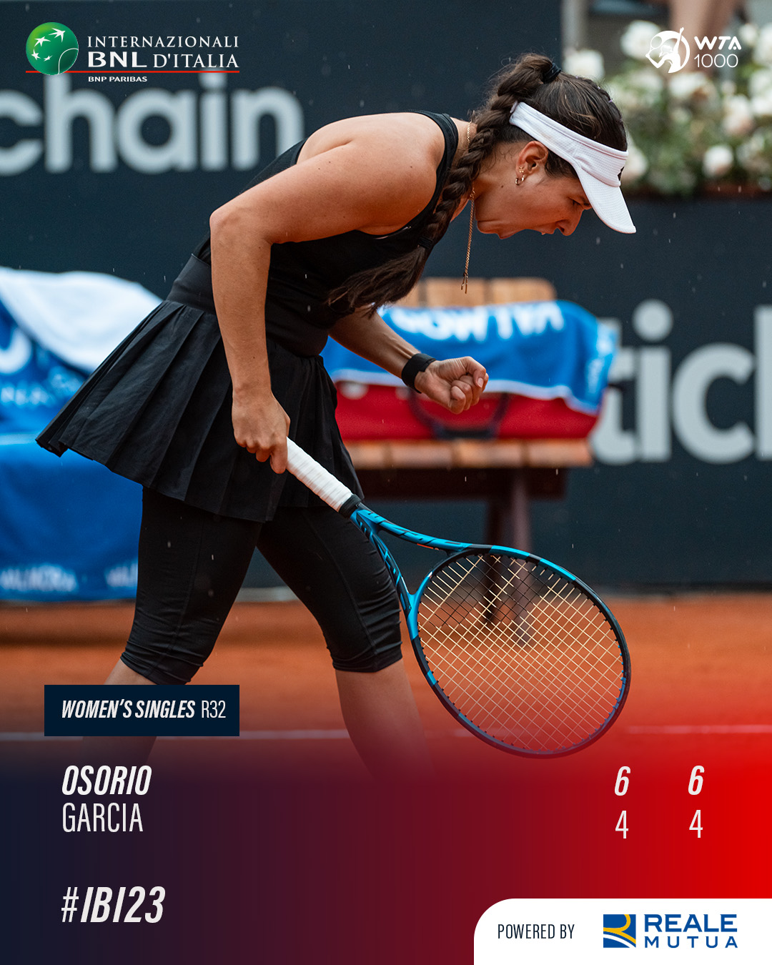 Sin duda alguna, Osorio regresó de su lesión con un gran nivel, carácter en la cancha y sobriedad para asumir los diferentes momentos de los partidos, en el torneo italiano llego desde la fase de clasificación y hoy ya esta sembrada en octavos de final donde enfrentará a la brasileña Beatriz Haddad Maia, ranking número 15 del planeta.