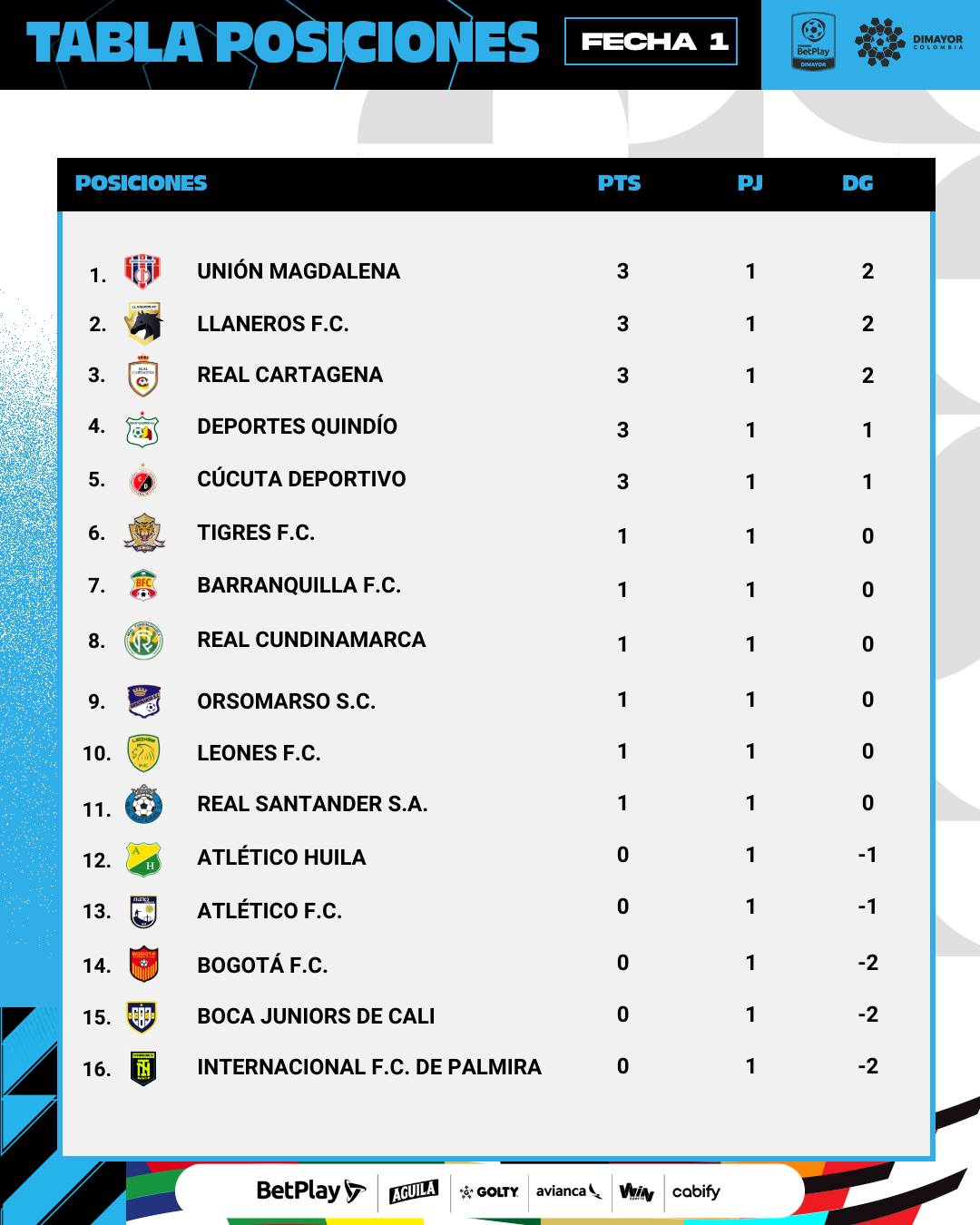 Real Cartagena, equipo que se ha reforzado con nombres importantes, debutó con triunfo, se impuso 2-0 al Internacional de Palmira, Unión Magdalena hizo lo propio pero en condición de visitante, superó 0-2 a Bogotá Fútbol Club en el estadio Metropolitano de Techo.