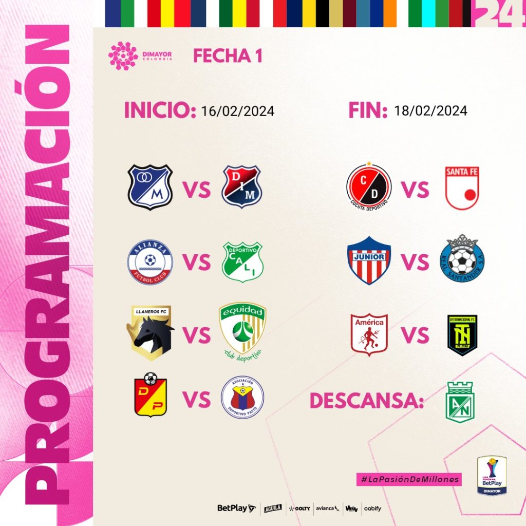 La espera terminó y el balón rodará el día de hoy, Millonarios de local enfrentará a Independiente Medellín, mañana se desarrollará el juego entre Alianza Fútbol Club y Deportivo Cali y el domingo se complementará la jornada con 5 juegos más, en esta fecha Atlético Nacional no tendrá competencia.
