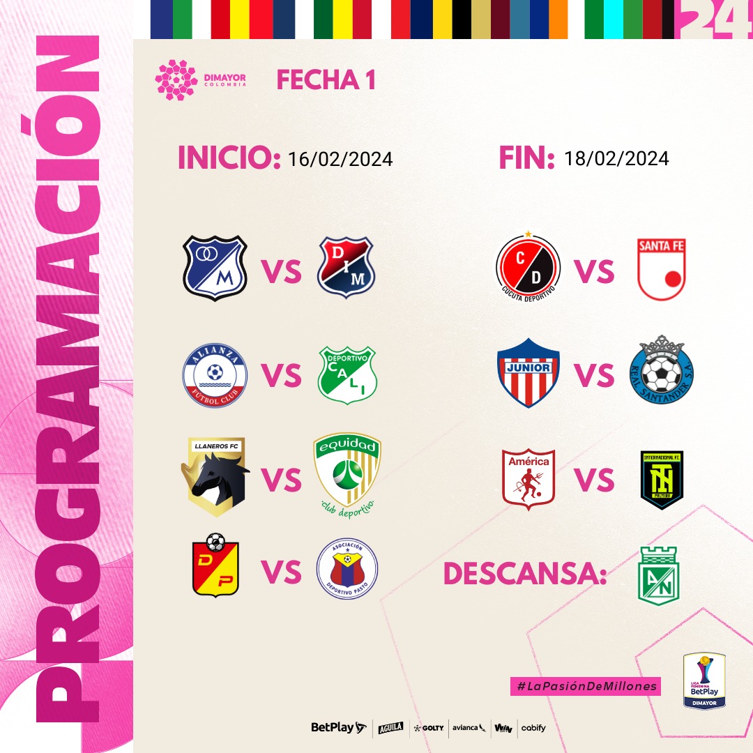 El día de hoy iniciará la Liga del Fútbol Profesional Femenino en Colombia, esta versión del campeonato, contará con la presencia de 15 equipos y con la organización de la División Mayor del Fútbol Colombiano – Dimayor, además del habitual patrocinador del rentado nacional en la últimas temporadas, Betplay.
