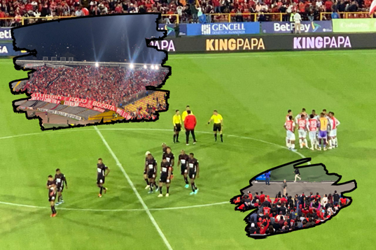 Emoción. Eso esperaban los hinchas ‘escarlatas’ que vibraron en Bogotá como si estuvieran en Cali. Pitando cuando salieron a calentar los ‘locales’, cada que ellos tocaban el balón una vez inició el encuentro. Todo parte de un plan para tocar los nervios de los ‘Amix’.