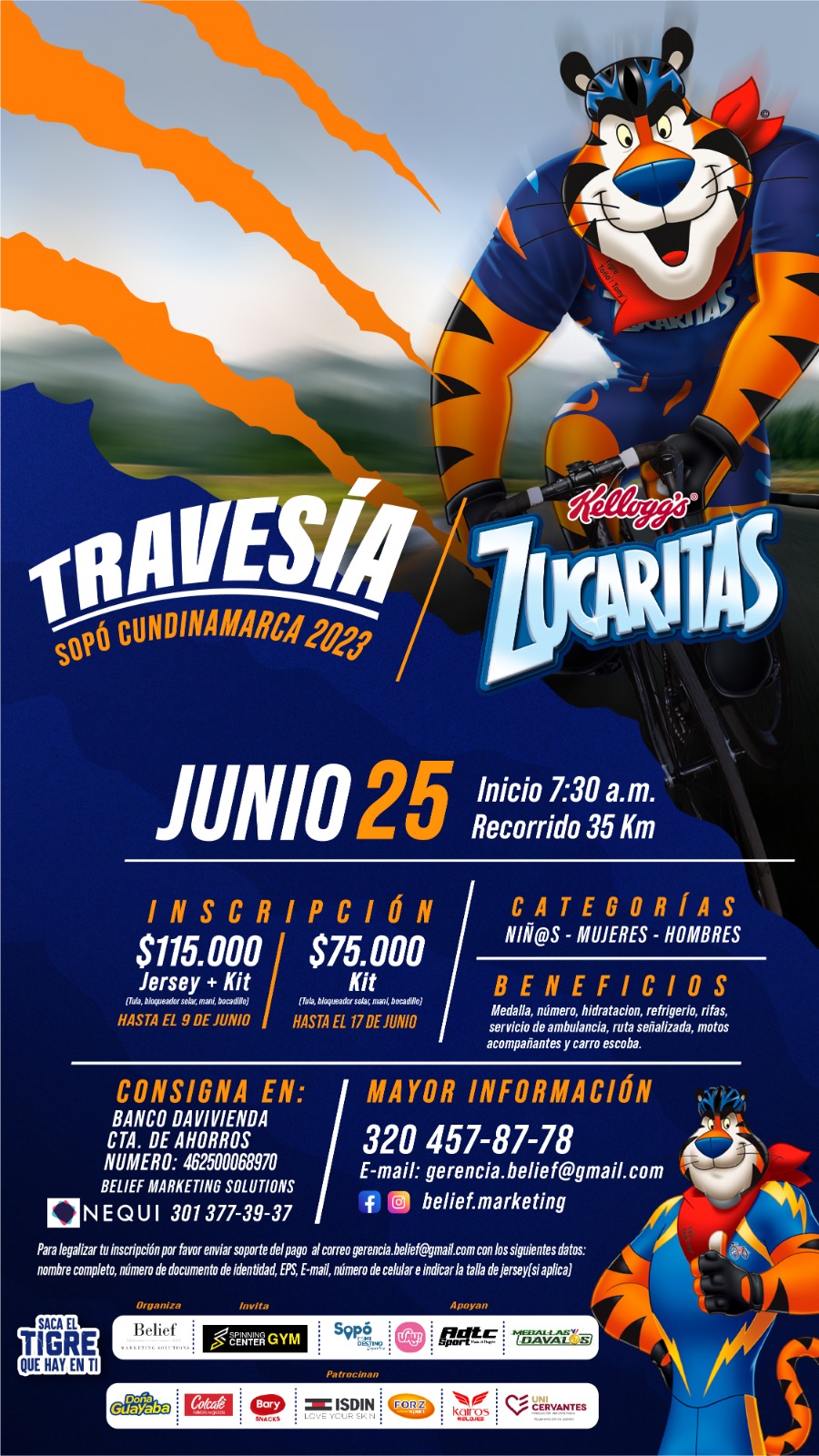 Si eres amante de la bicicleta, la aventura y te gusta apreciar los bellos paisajes que nos ofrece el departamento de Cundinamarca, estas a tiempo de inscribirte para participar de la “Travesía Zucaritas Sopó”, actividad a desarrollarse sobre 35 kilómetros en el municipio de Sopó el próximo domingo 25 de junio.